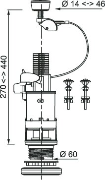 Арматура для бачка Wirquin нижняя подводка однорежимный тросиковый механизм