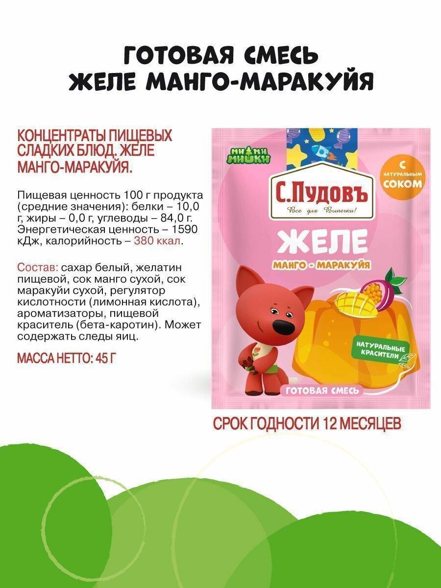 Купить Готовая смесь "Желе Манго-маракуйя" МиМиМишки С.Пудовъ,фруктовое желе в пакетике,45 грамм.