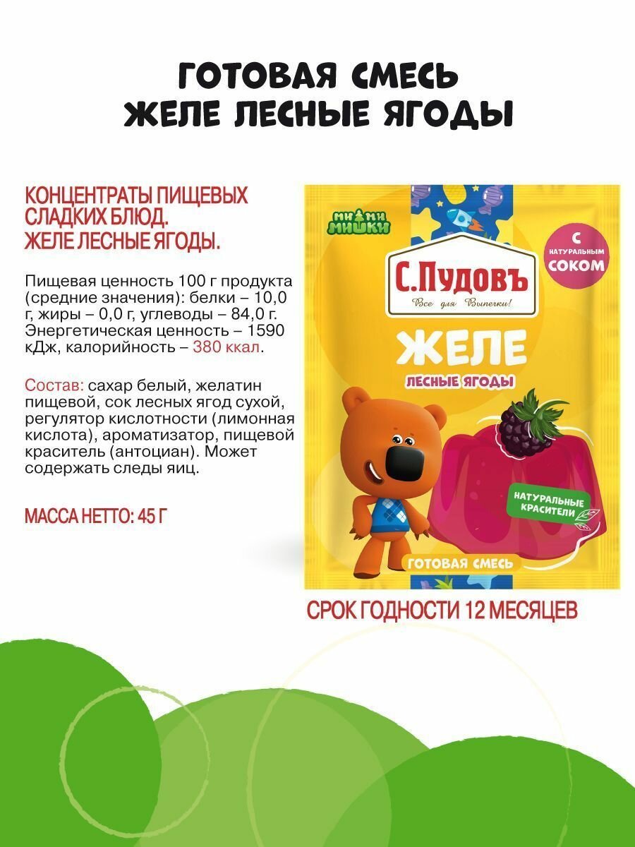 Купить Готовая смесь "Желе Лесные ягоды" МиМиМишки С.Пудовъ,фруктовое желе в пакетике,45 грамм.