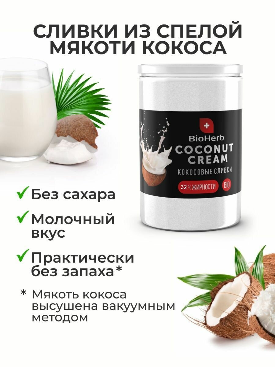 BioHerb Кокосовые сливки сухие, растительные, 500 г интересное: