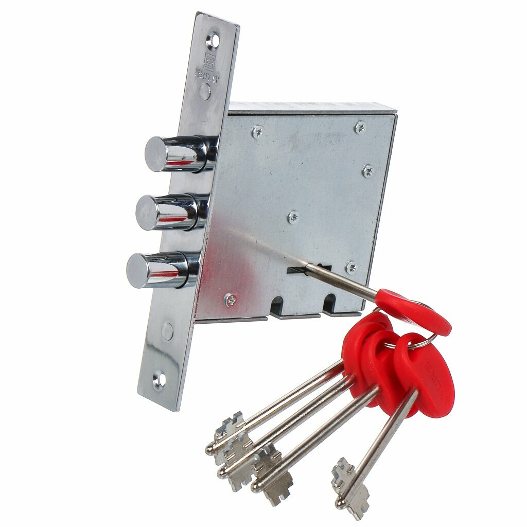 Замок врезной сувальдный для входной металлической сейф двери булат ЗВ8-6.60.00.3(14).08, хром