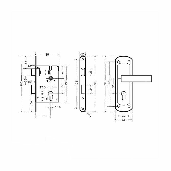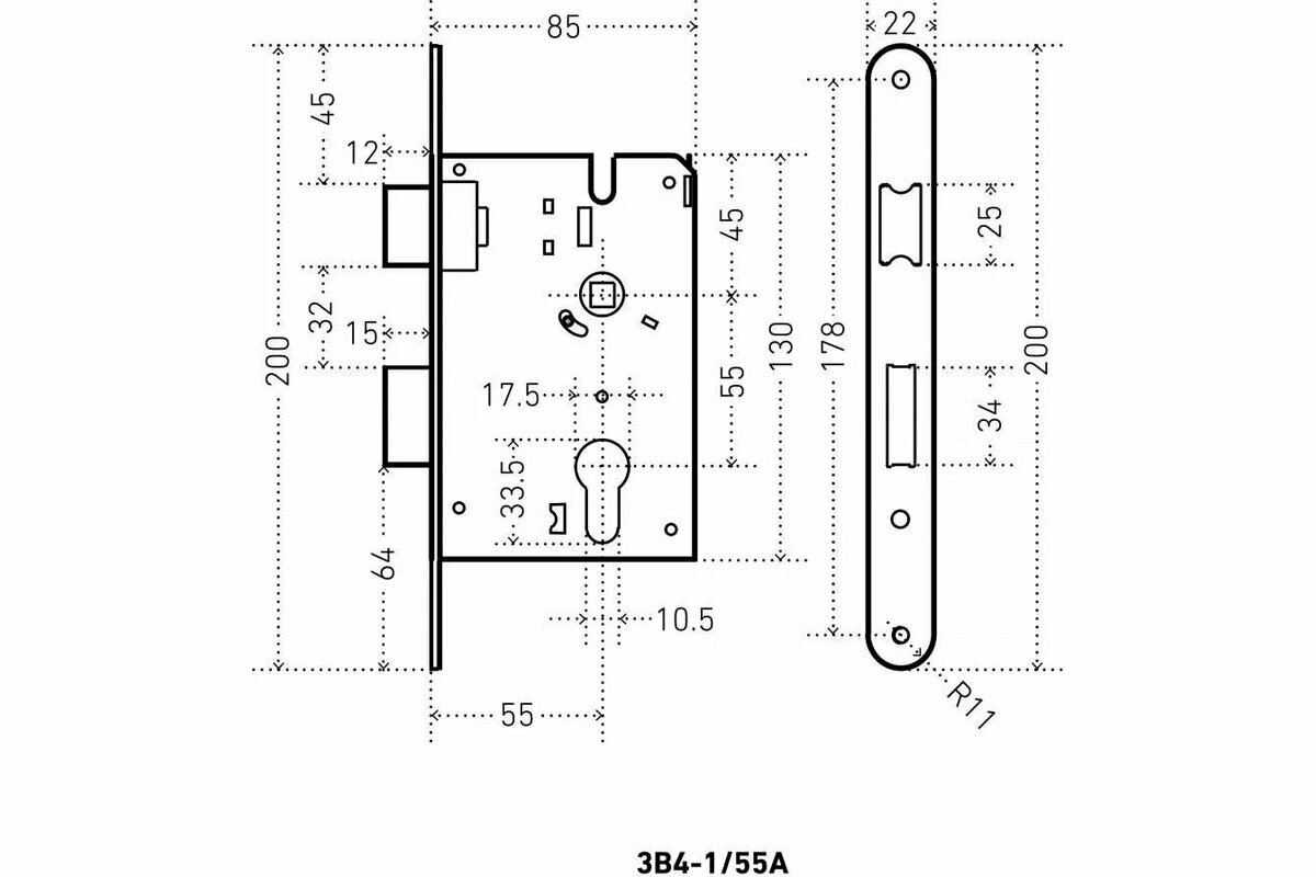 Врезной замок Аллюр ЗВ4-1/55A AC