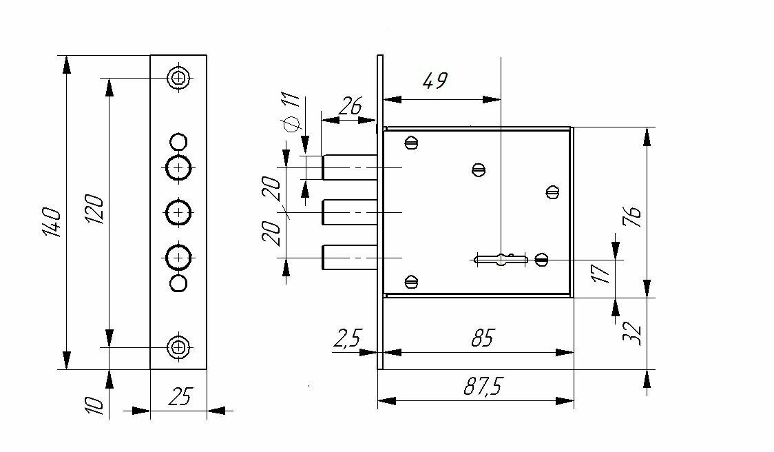 Замок врезной магнитный 25М-85 мм, чёрный Нора-М 18525