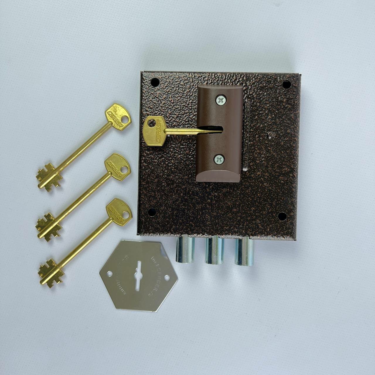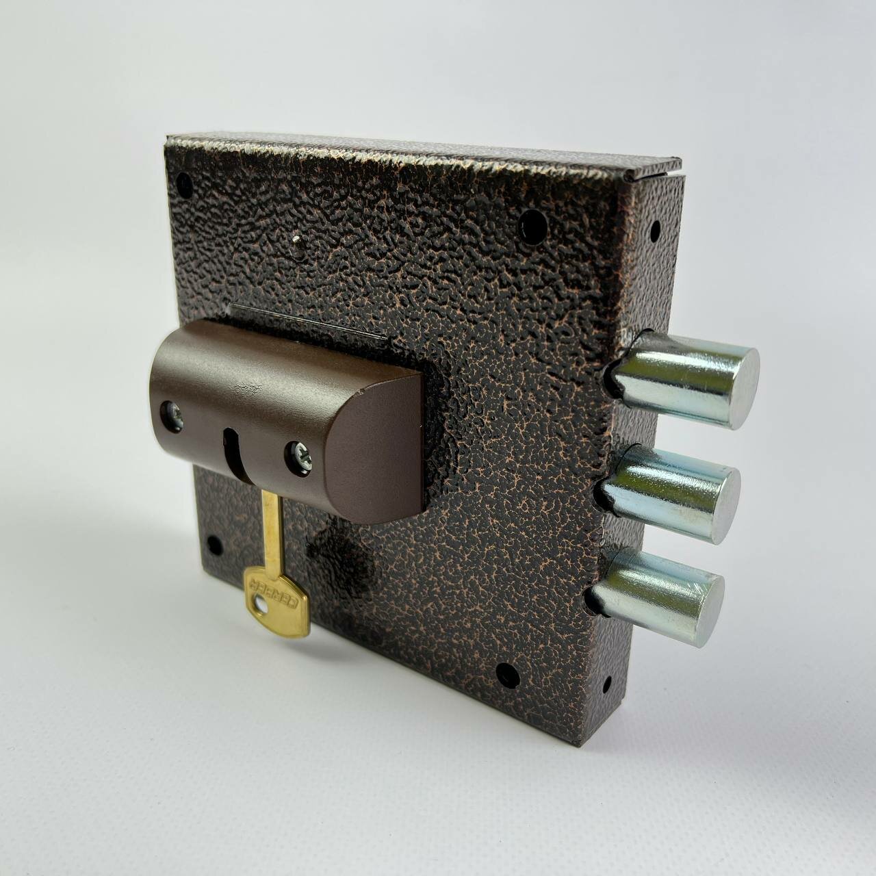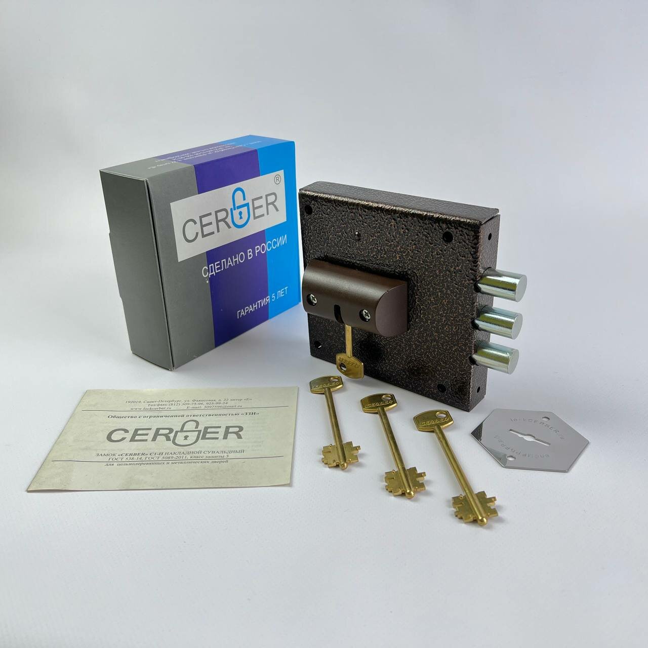 Дверной и гаражный замок накладной сувальдный с постоянным ключом CERBER С1-П БЗ ЗНУ-П 014 (3 ключа *60 мм ) без ответной планки