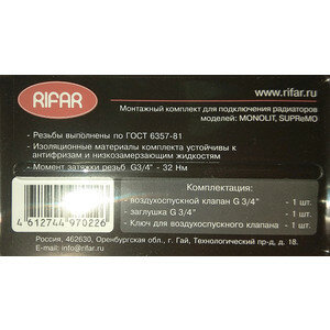 Заглушка, ключ, автоматический воздухоотводчик Rifar комплект монтажный для радиаторов Monolit/Supremo G3/4” металл интересное: