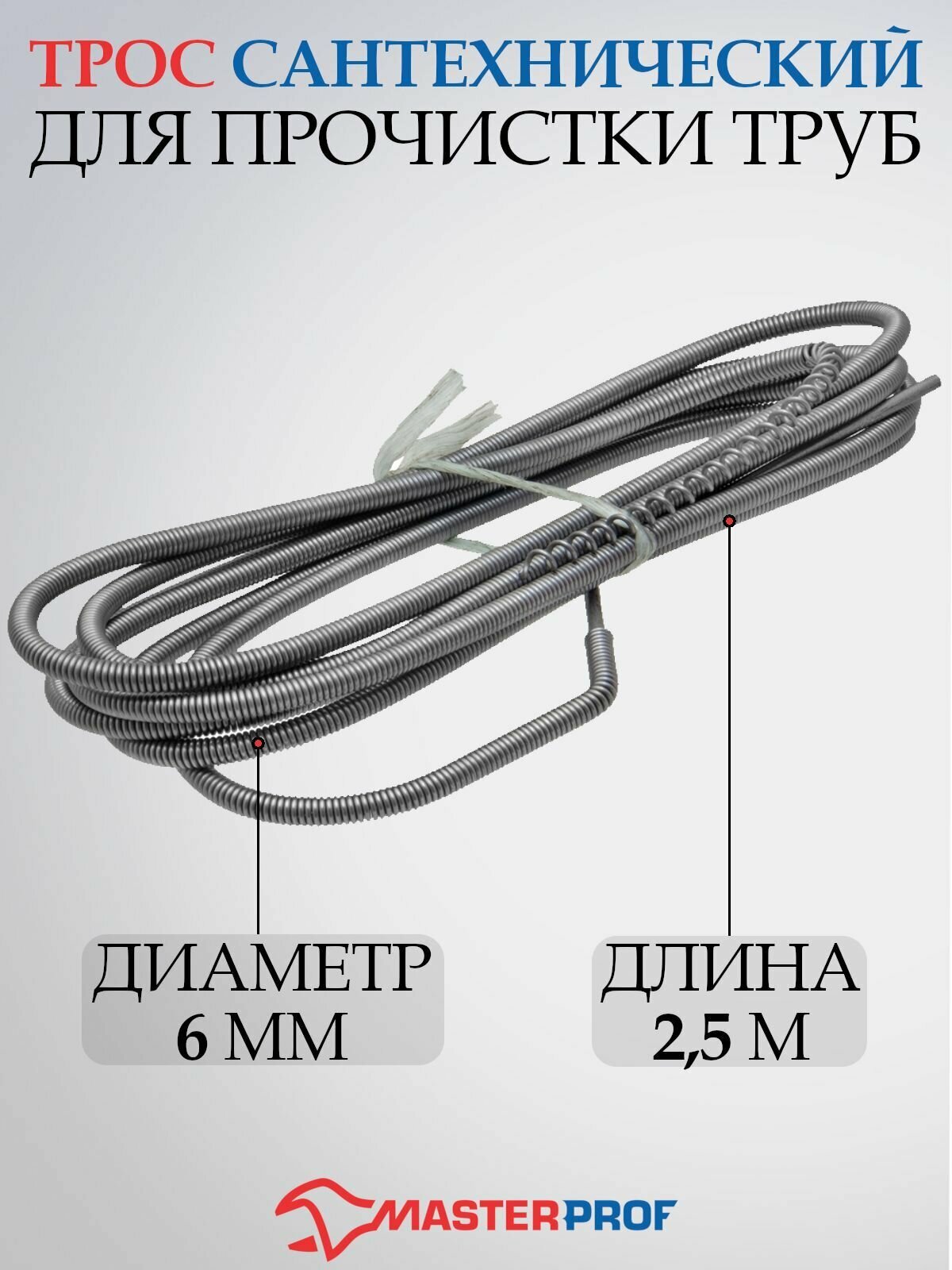 Трос сантехнический MasterProf, 6 мм x 2,5 м