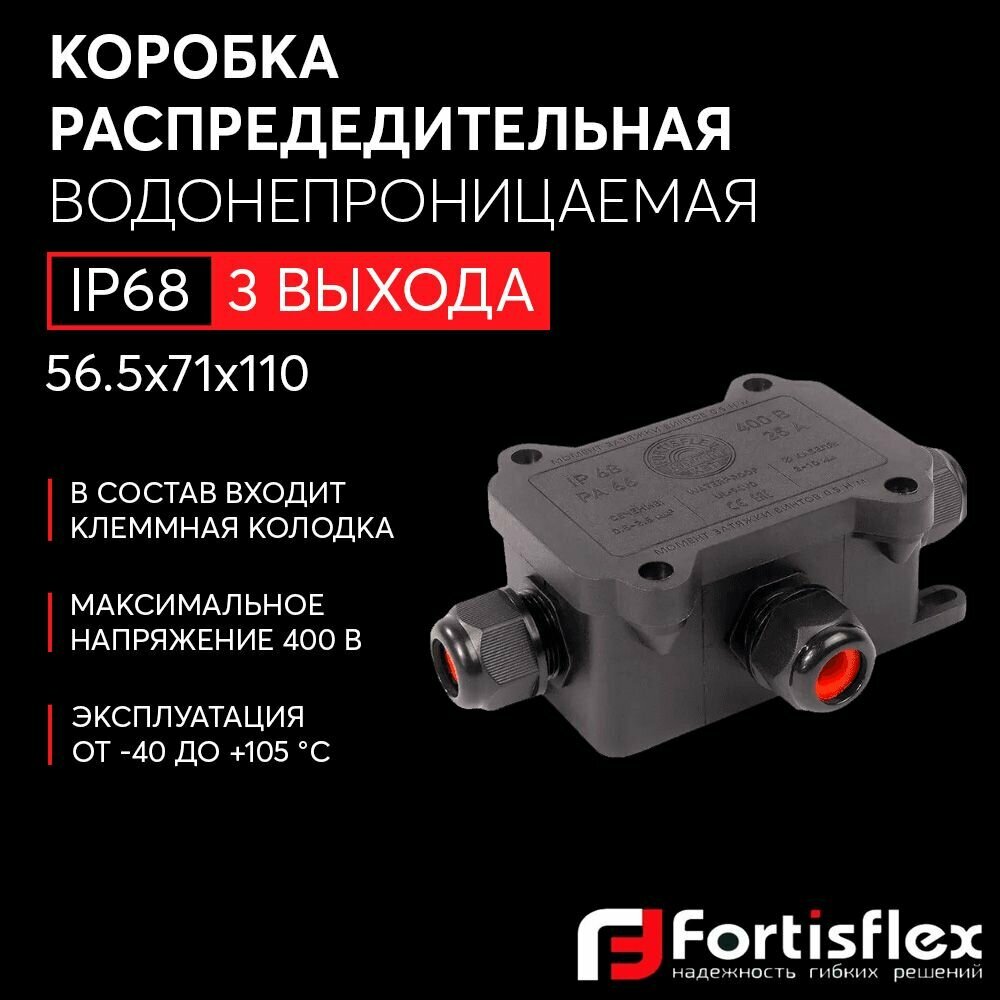 СохранитьКоробка распределительная водонепроницаемая (3 выхода) Fortisflex MG Box M-3, IP68 интересное: