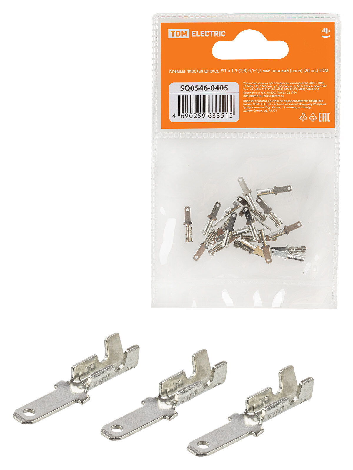 TDM Клемма плоская штекер рп-п 1,5-(2,8) 0,5-1,5 мм? плоский (папа) (20шт) SQ0546-0405
