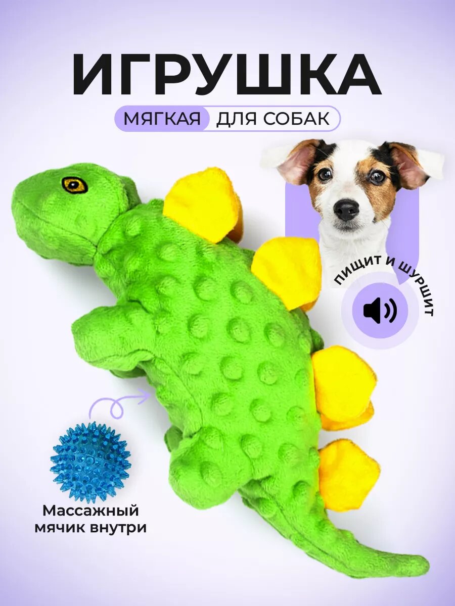 Купить Мягкая развивающая игрушка для собак "Динозавр с мячом-пищалкой", для любых пород