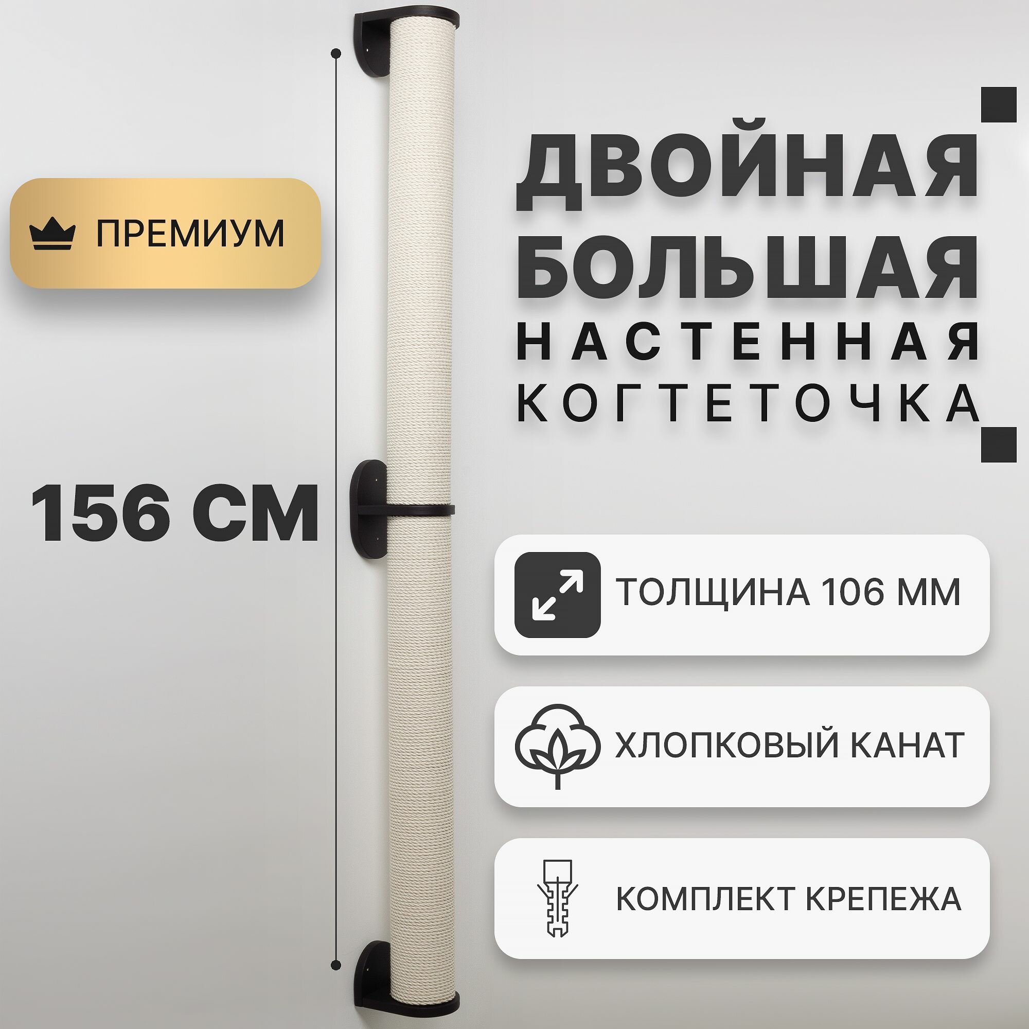 Большая настенная когтеточка-столбик двойная CATSAD, белый цвет, хлопок