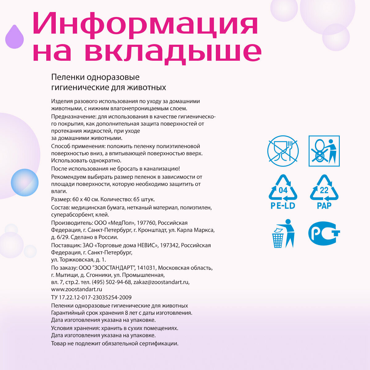 Пеленки впитывающие для животных ZOO няня супертонкие гелевые одноразовые 60х40 65шт интересное: