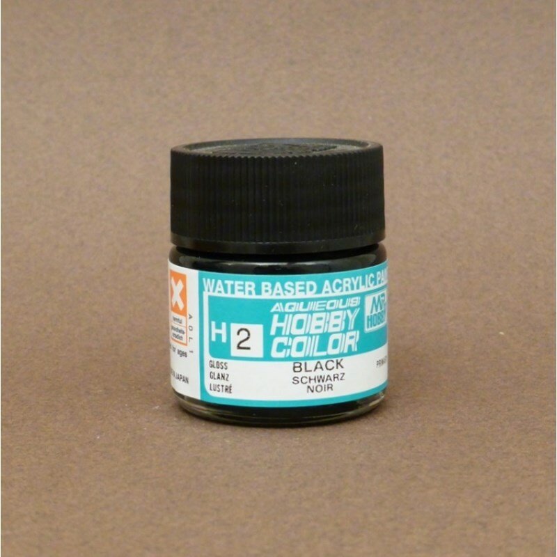 H2 Mr.Hobby Краска акриловая на водной основе,Чёрный глянцевый, 10 мл.
