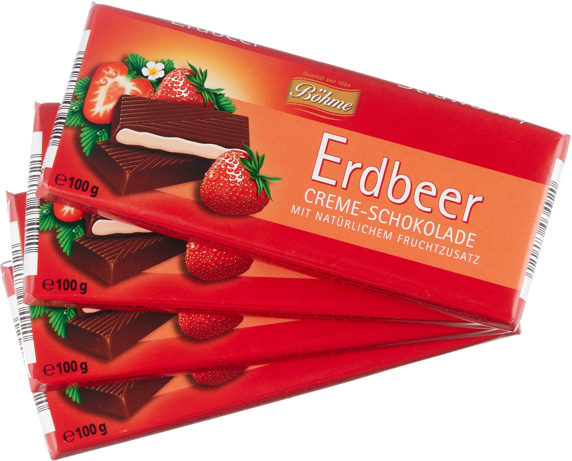 Купить Темный шоколад BOHME с клубничной начинкой (62%), 4шт x 100г
