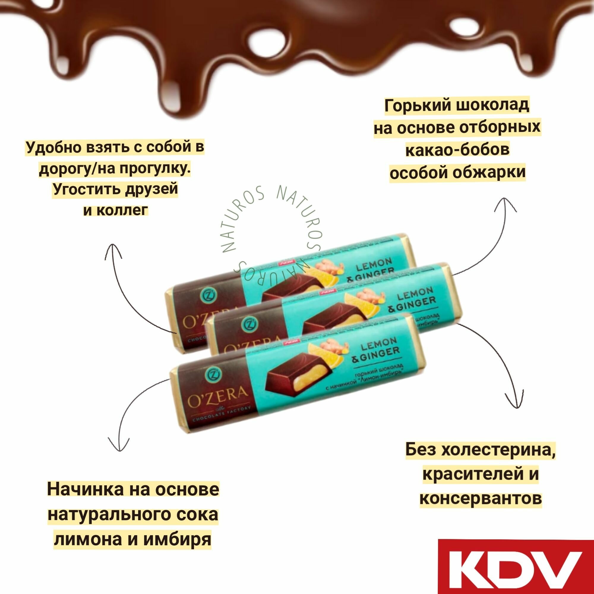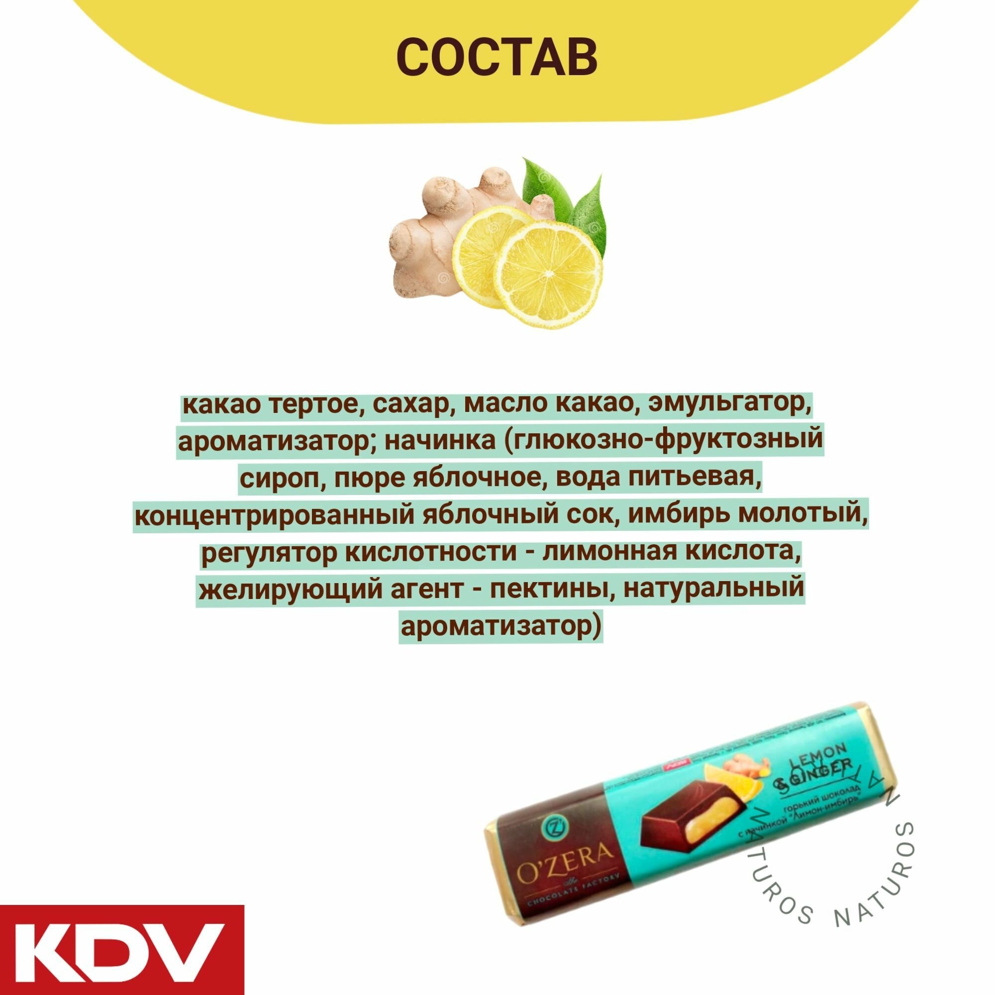 OZera, шоколадный батончик Lemon Ginger, 20шт по 50 г интересное:
