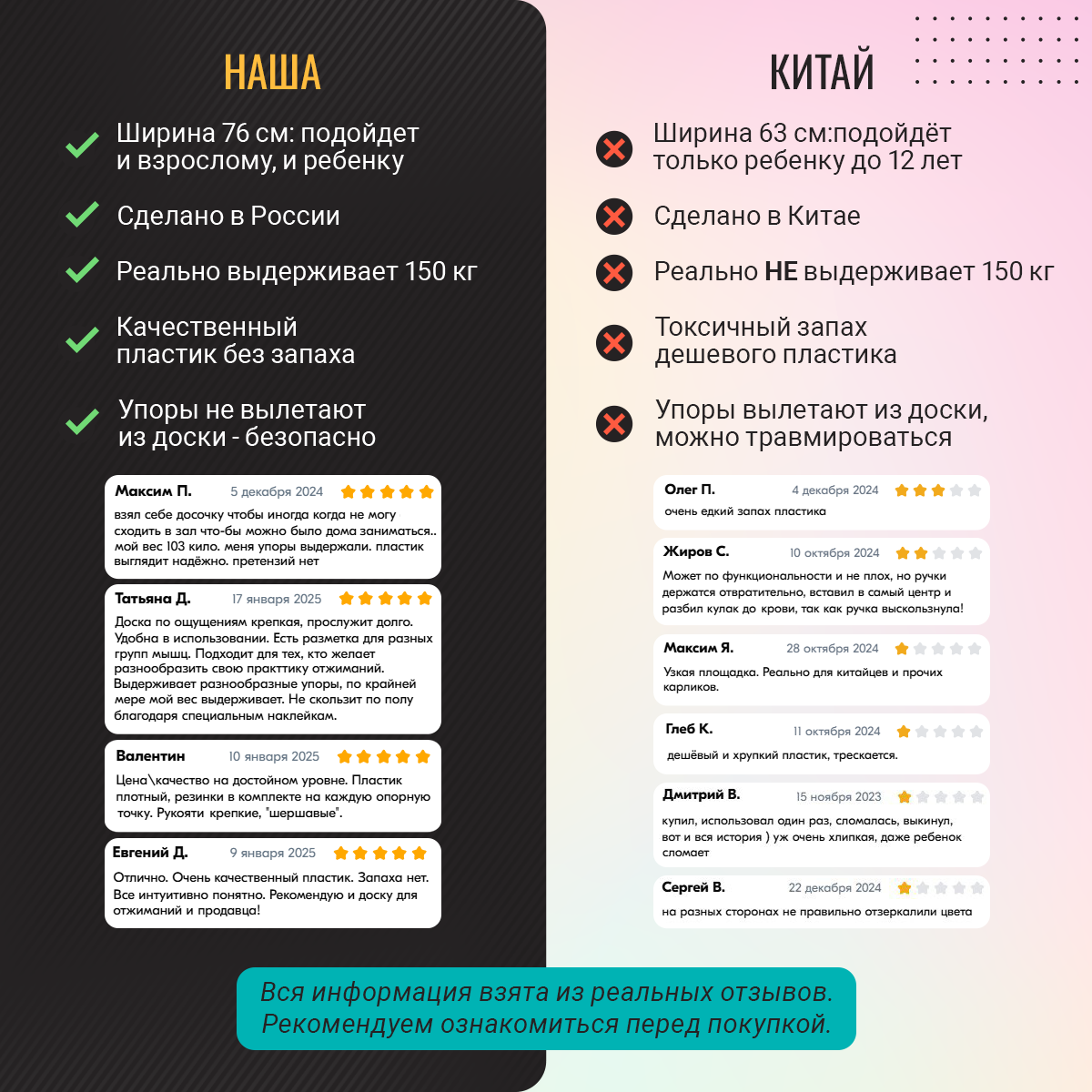 Ниже Вы можете прочитать отзывы на Платформа / Упоры / Доска для отжиманий с платформой "Стикербомб", ознакомится с подробными характеристиками, посмотреть интересные обзоры и фотографии на Платформа / Упоры / Доска для отжиманий с платформой "Стикербомб".