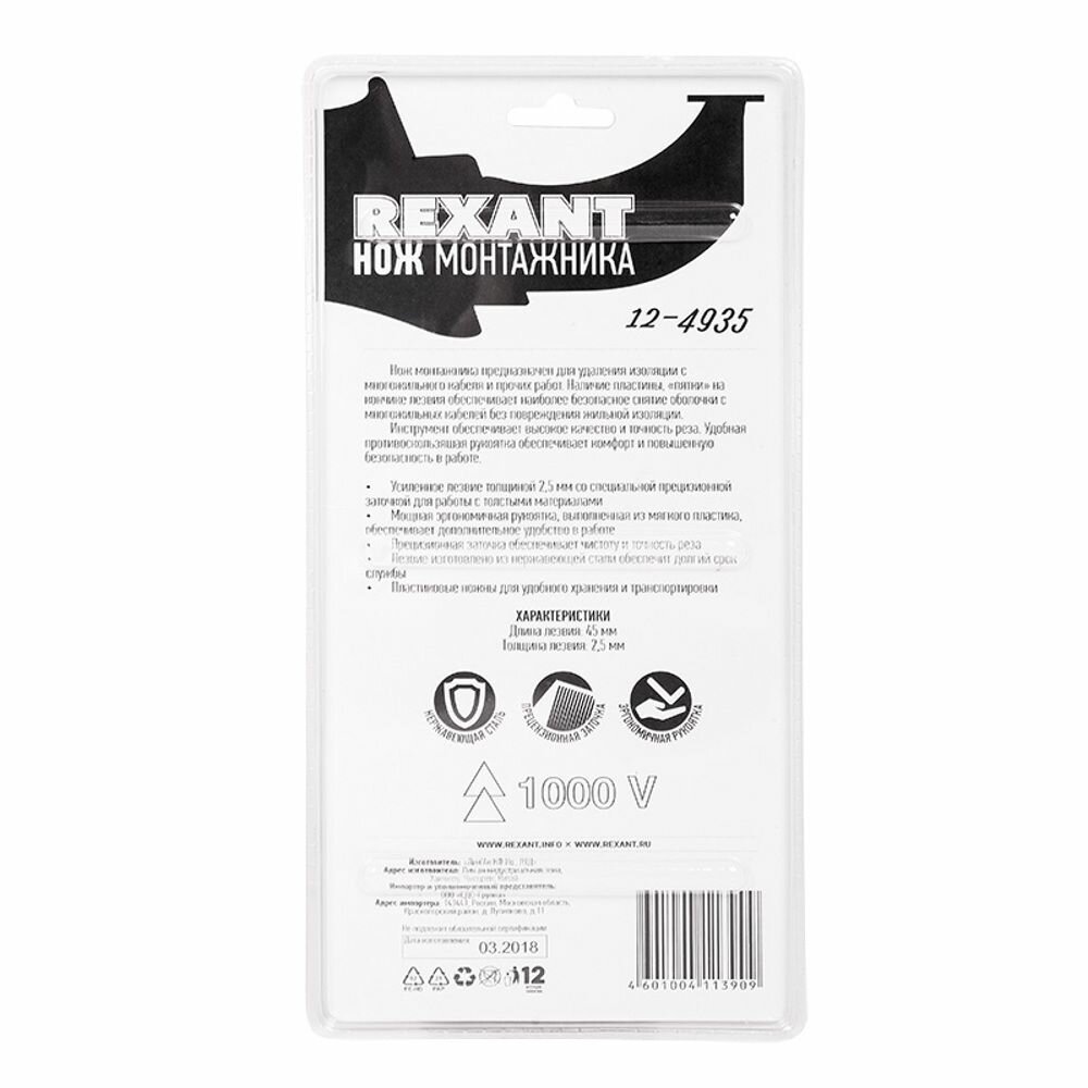 Нож монтажника с «пяткой» REXANT интересное: