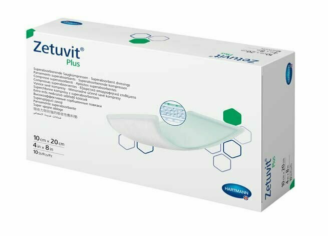 Повязка суперабсорбирующая, стерильная Zetuvit Plus/Цетувит Плюс, размер 10х20 см.,10 шт.