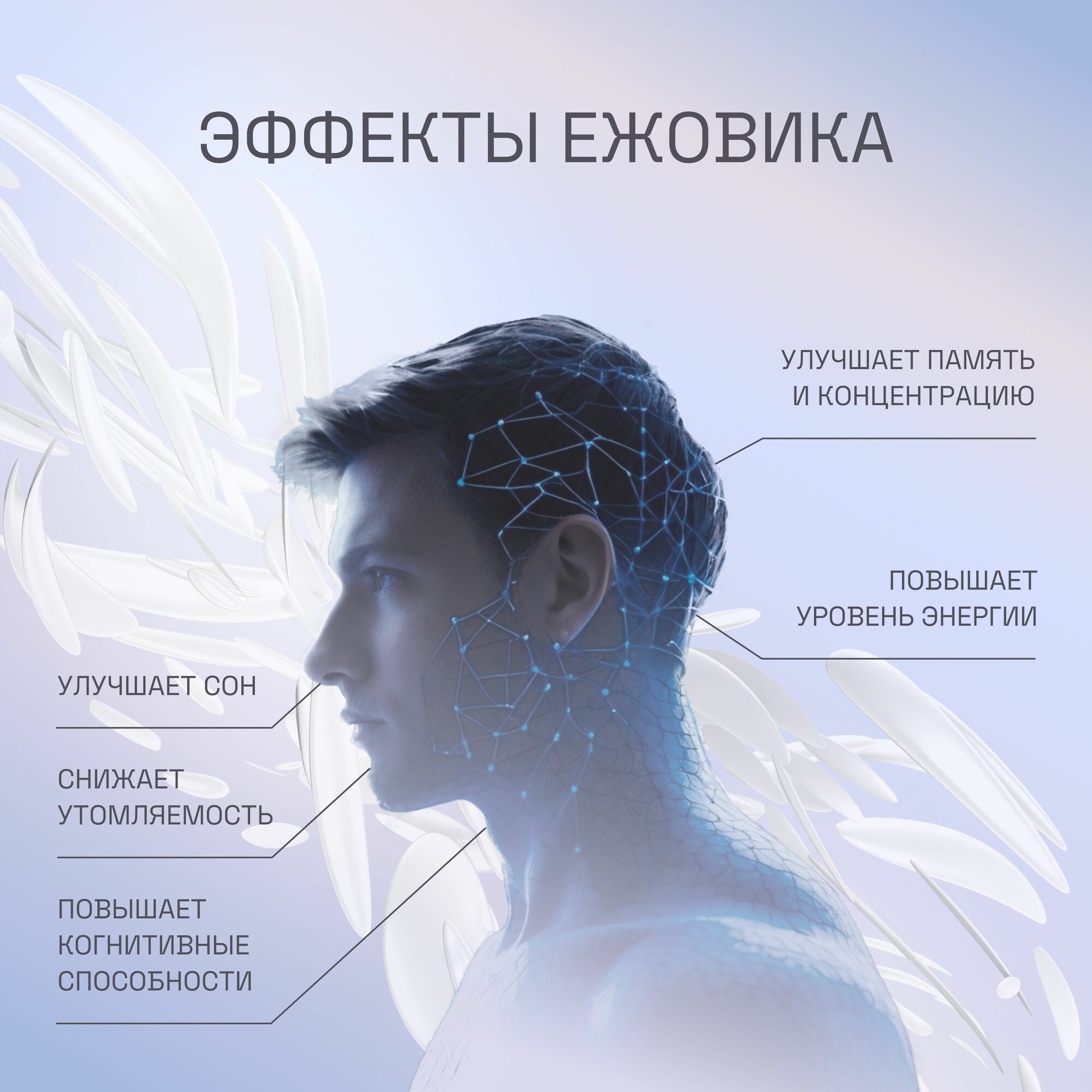 | Состав | Экстракт плодовых тел Ежовик гребенчатый, Экстракт мицелия Ежовик гребенчатый, Аскорбиновая кислота, Капсула желатиновая. |
