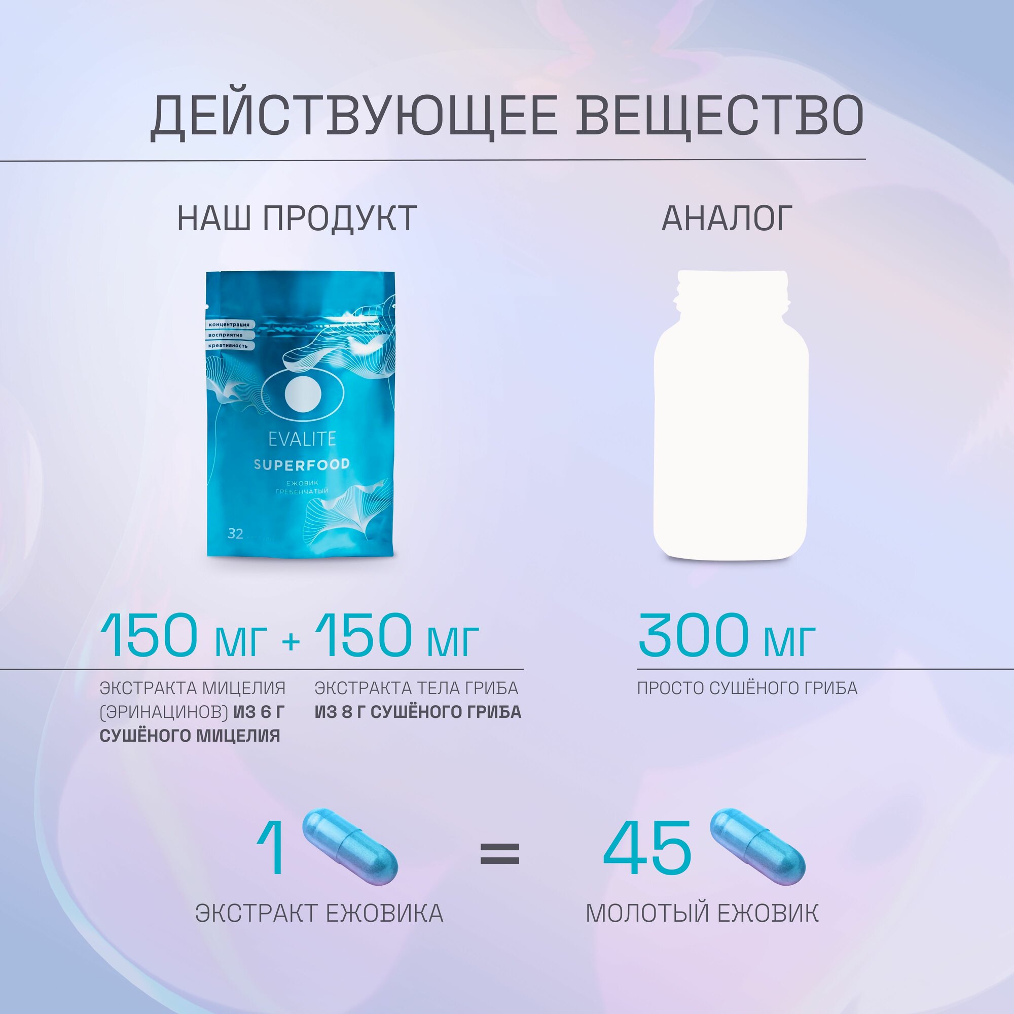 Ежовик гребенчатый Evalite.Superfood дой-пак (32 капсулы) интересное: