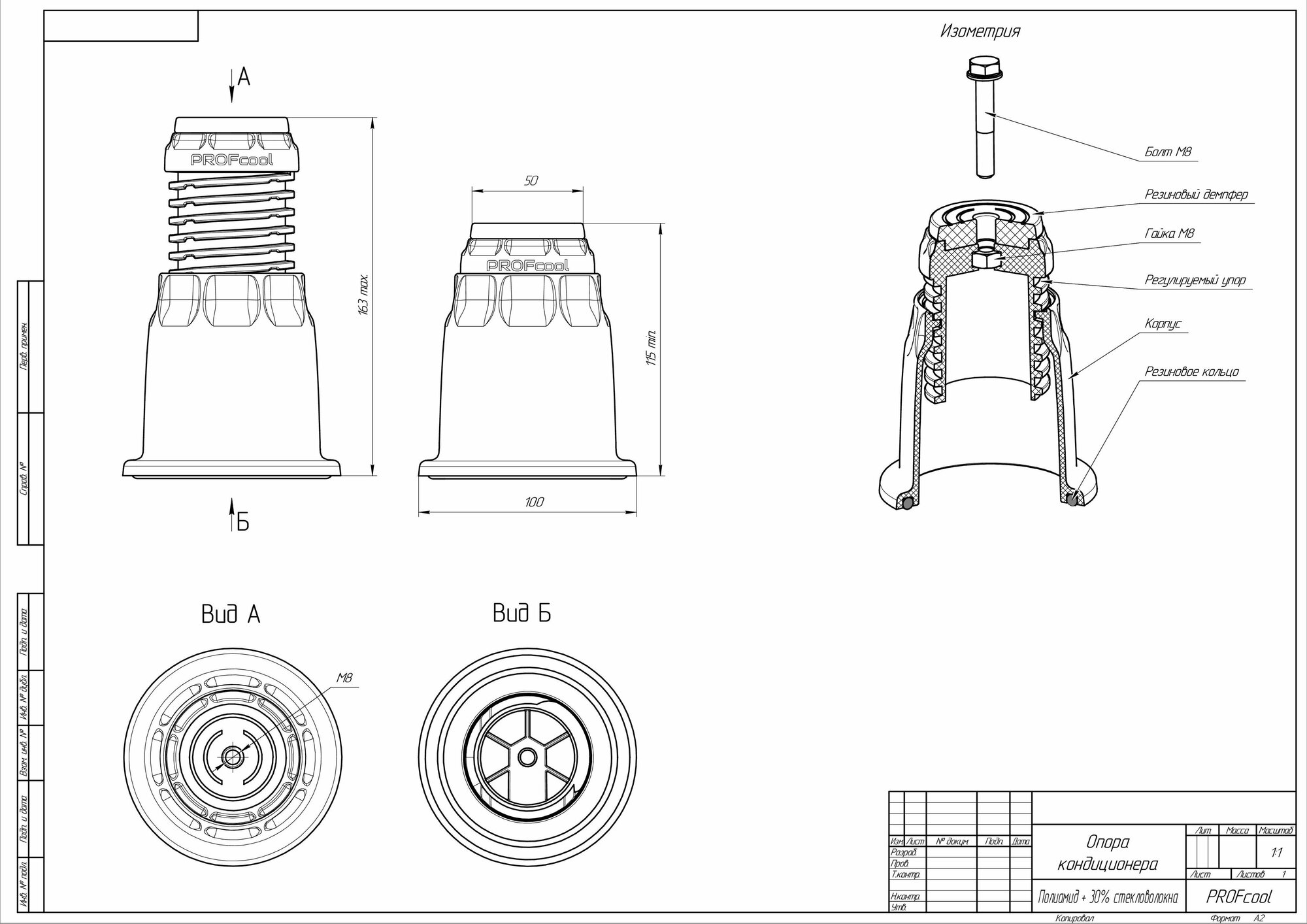 Подставка для кондиционера PROFcool VX4 пластиковая/антивибрационная опора, 4 шт