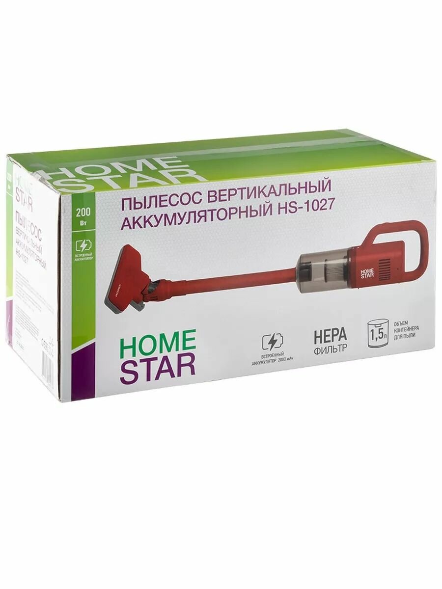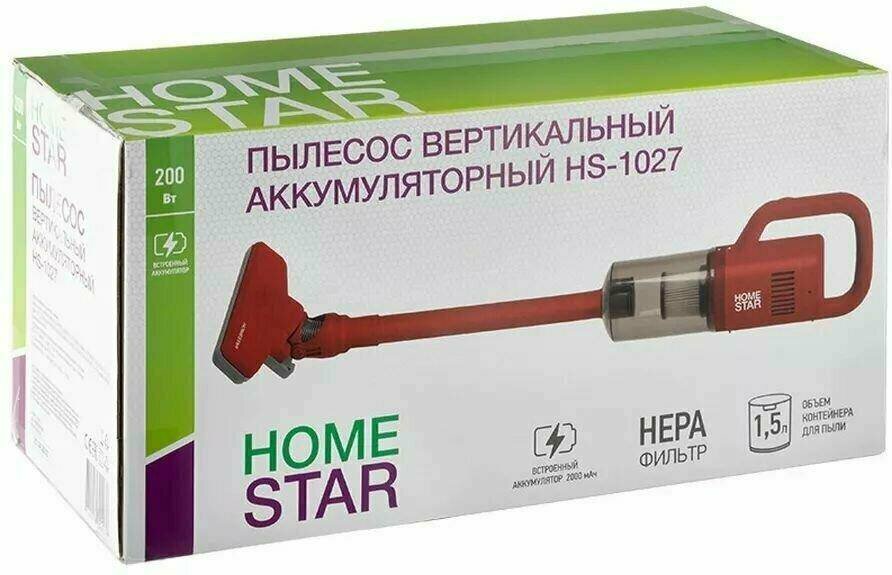 Пылесос вертикальный аккумуляторный HomeStar HS-1027 красный интересное: