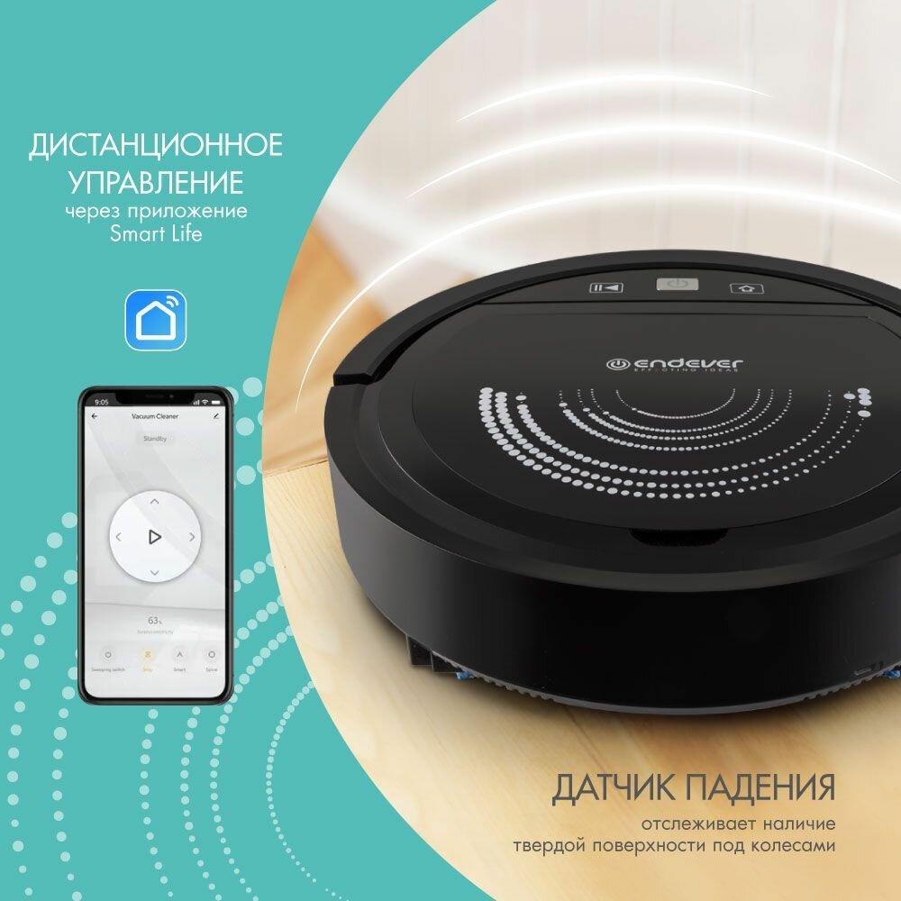 Робот пылесос с влажной и сухой уборкой ENDEVER Spectre-99, 55 Дб, площадь уборки 90-120 кв.м интересное:
