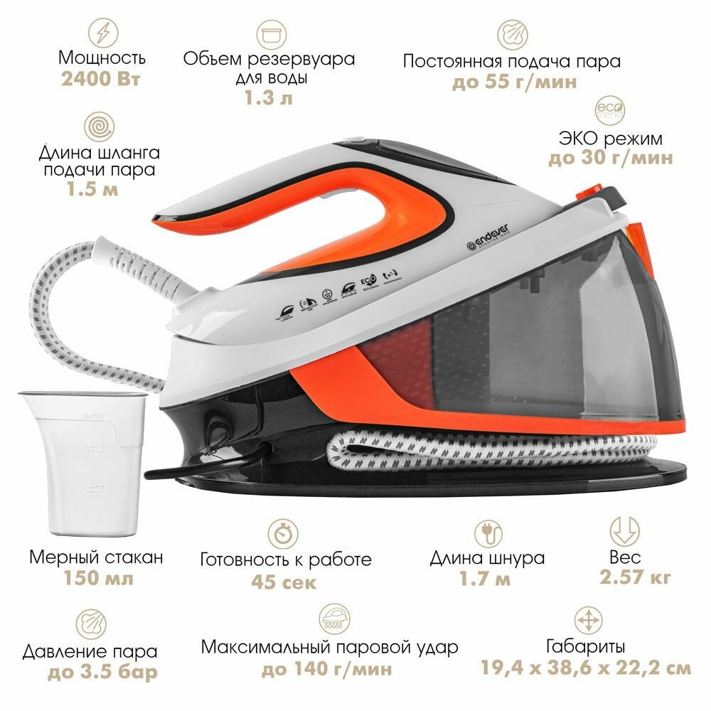 Парогенератор с утюгом для одежды ENDEVER Delta-350 / до 140 г/мин / 1.3л интересное: