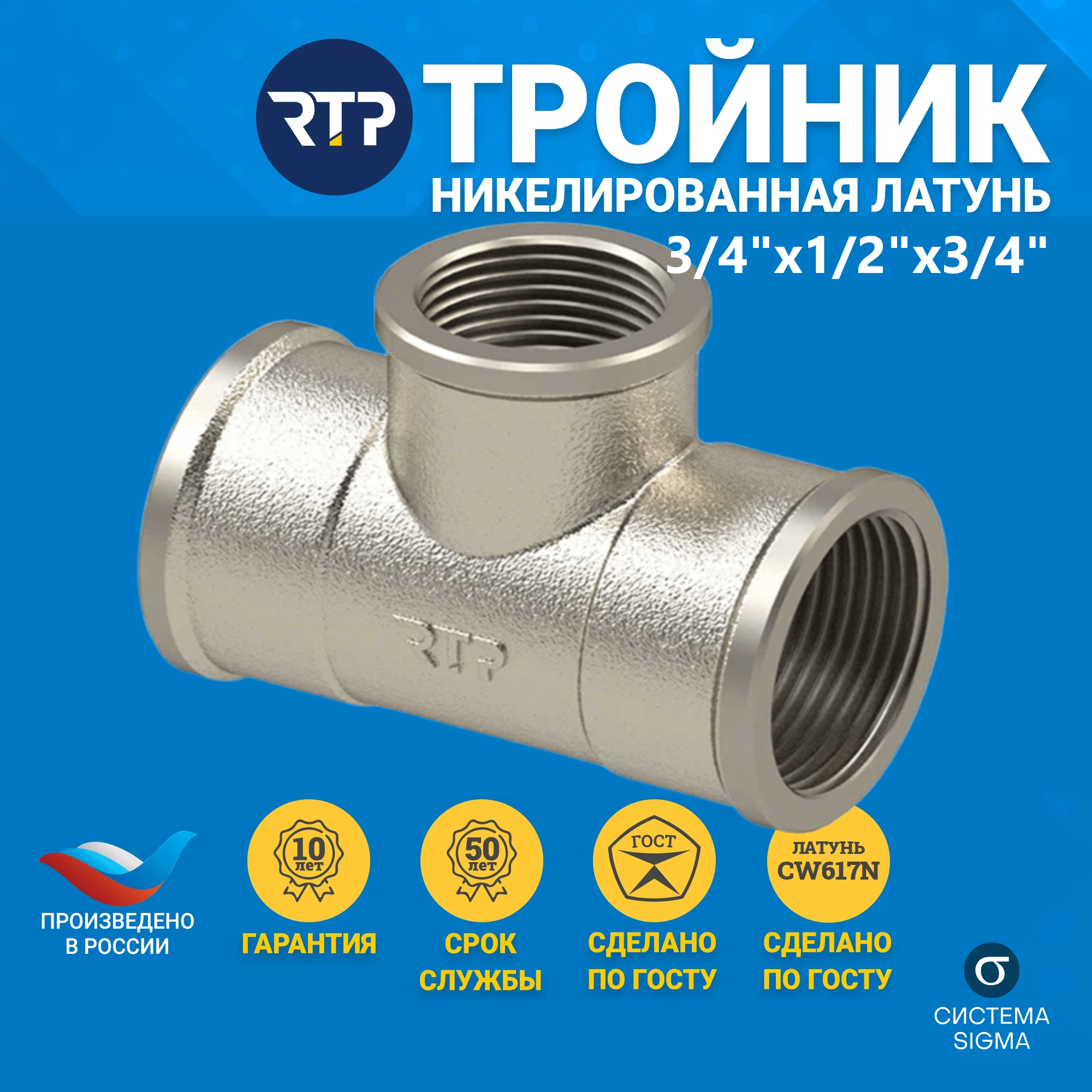 Тройник переходной латунь внутр./внутр./внутр. резьба 3/4х1/2х3/4дюйм никель (инд. упак.) RTP 34924