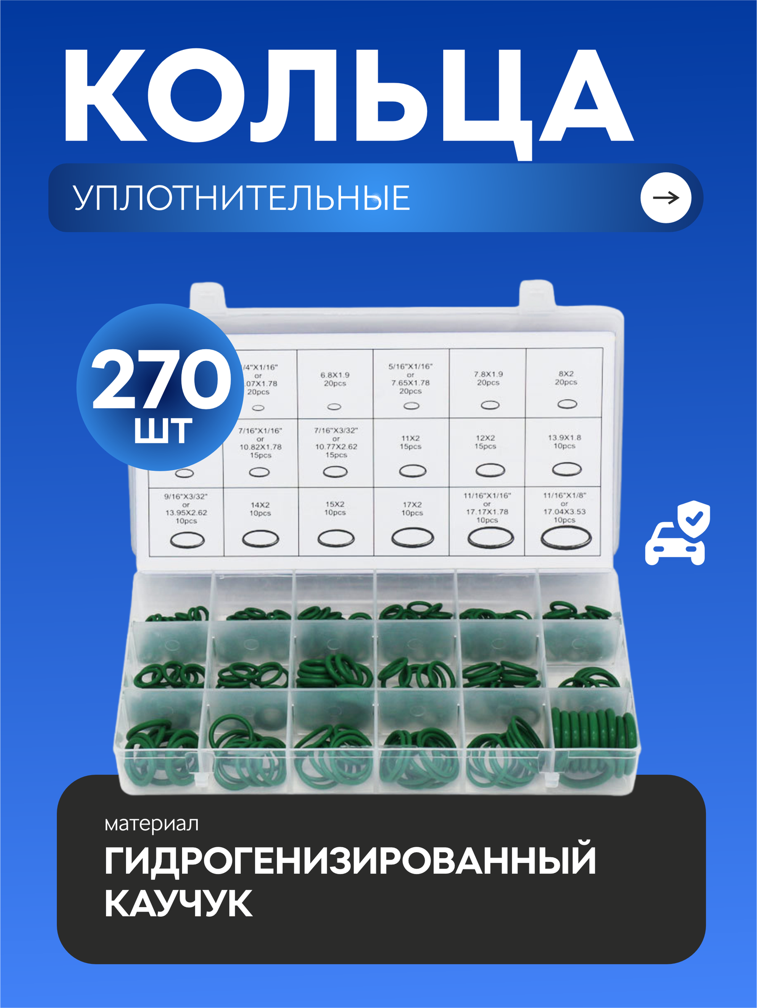 Уплотнительные кольца резиновые для автокондиционера, набор 270 штук, цвет - зеленый интересное: