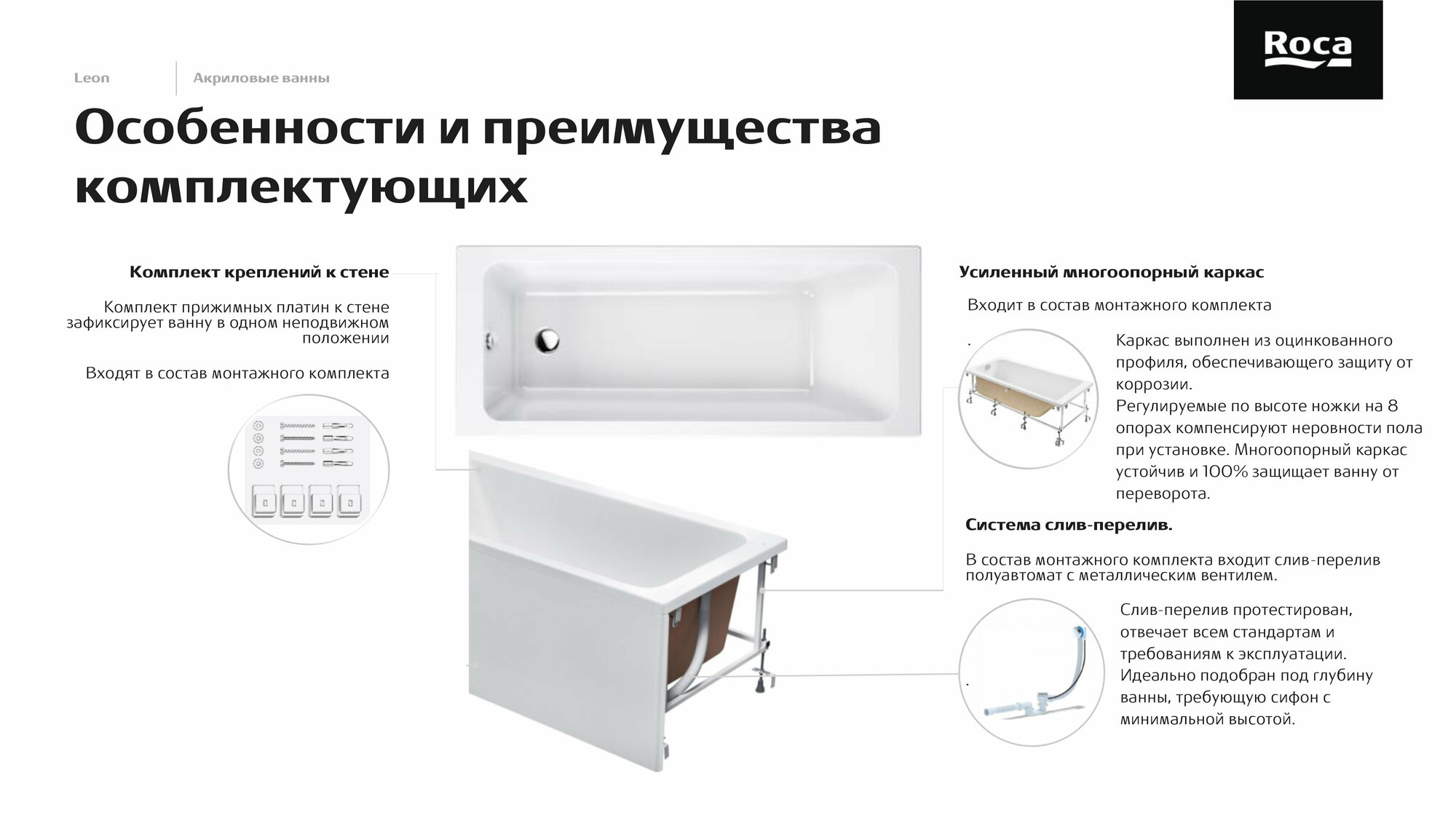 Монтажный комплект для ванны Roca Leon (150x70) 248661000 интересное: