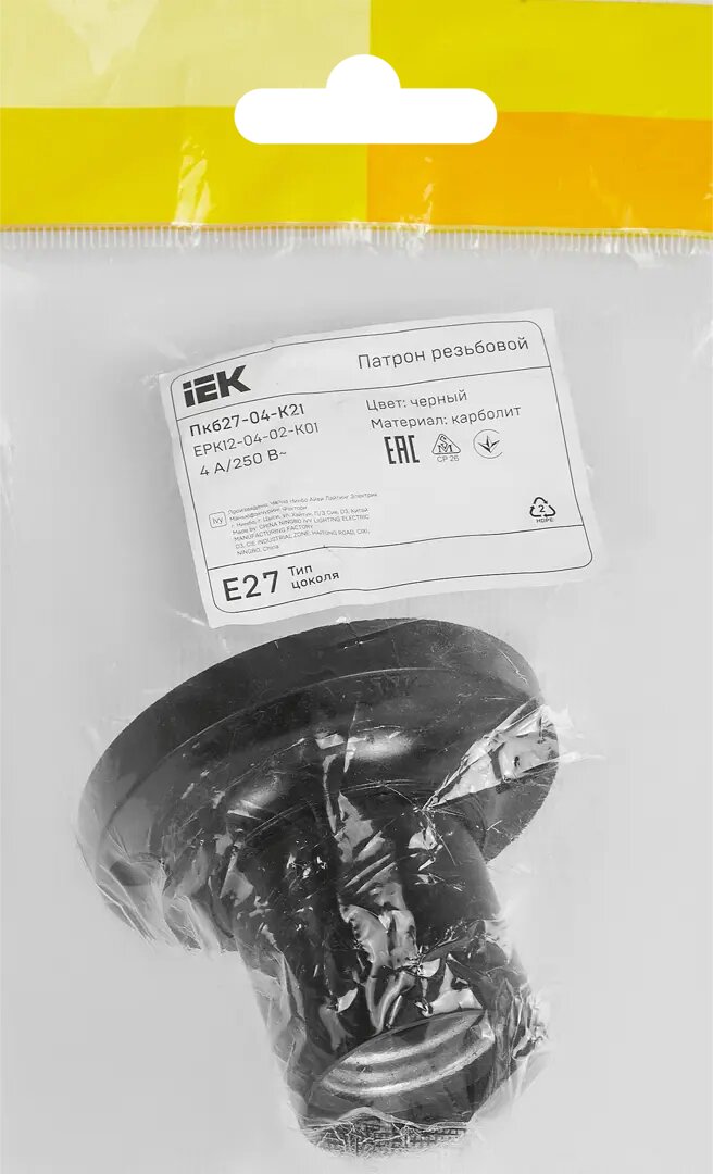 Патрон IEK Пкб27-04-К21 карболитовый для лампы Е27 потолочный цвет черный интересное: