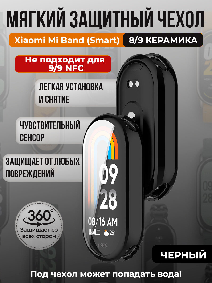 СохранитьМягкий защитный чехол TPU для Xiaomi Mi Band 8/ 9 Керамический корпус, черный интересное: