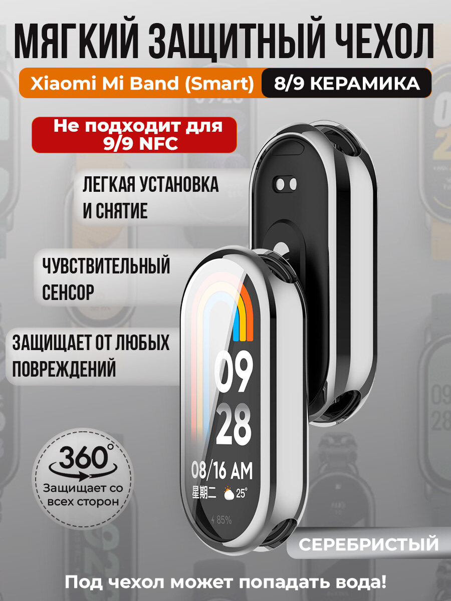 СохранитьМягкий защитный чехол TPU для Xiaomi Mi Band 8/ 9 Керамический корпус, серебристый интересное: