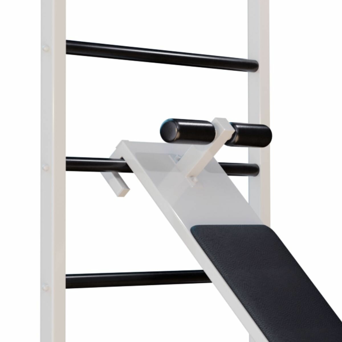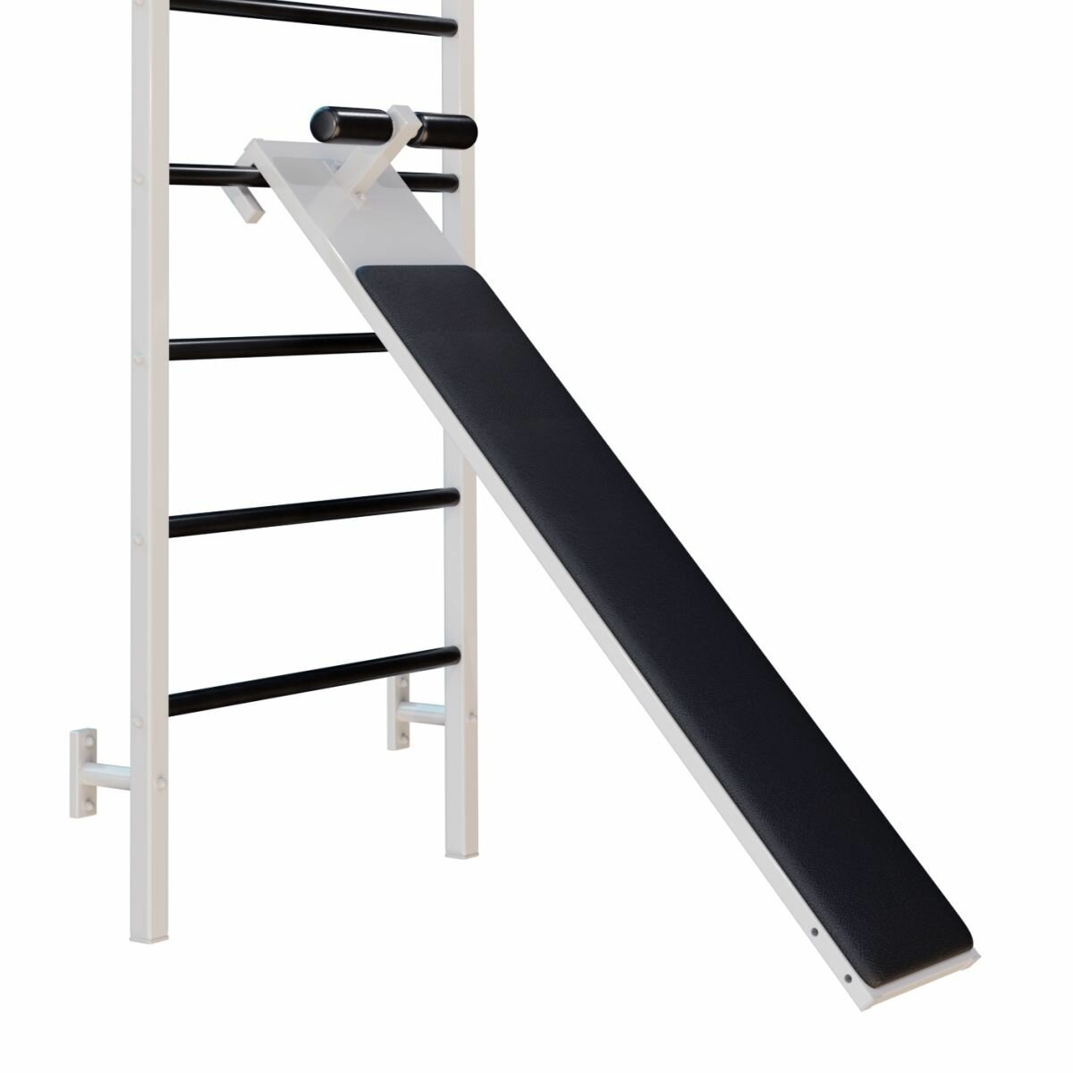 Шведская стенка металлическая 240x71x16 см + Турник Брусья Пресс + Доска для пресса с валиками Белый