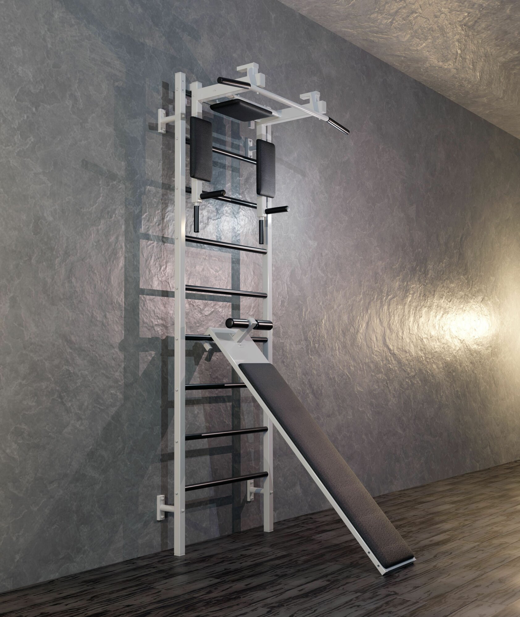 Шведская стенка металлическая + Турник Брусья Пресс + доска угловая для пресса с валиками интересное: