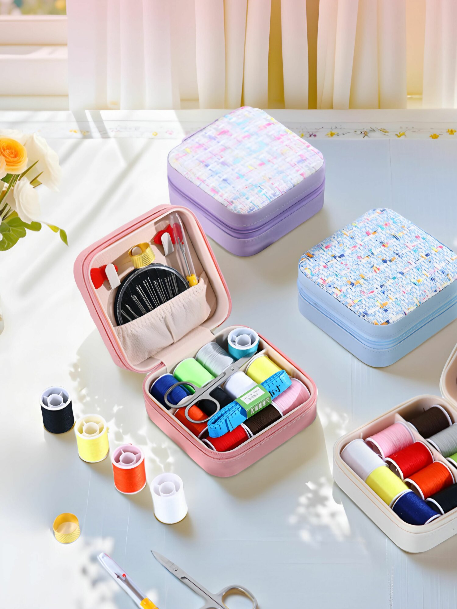 Швейный набор шкатулка на молнии (белый)
