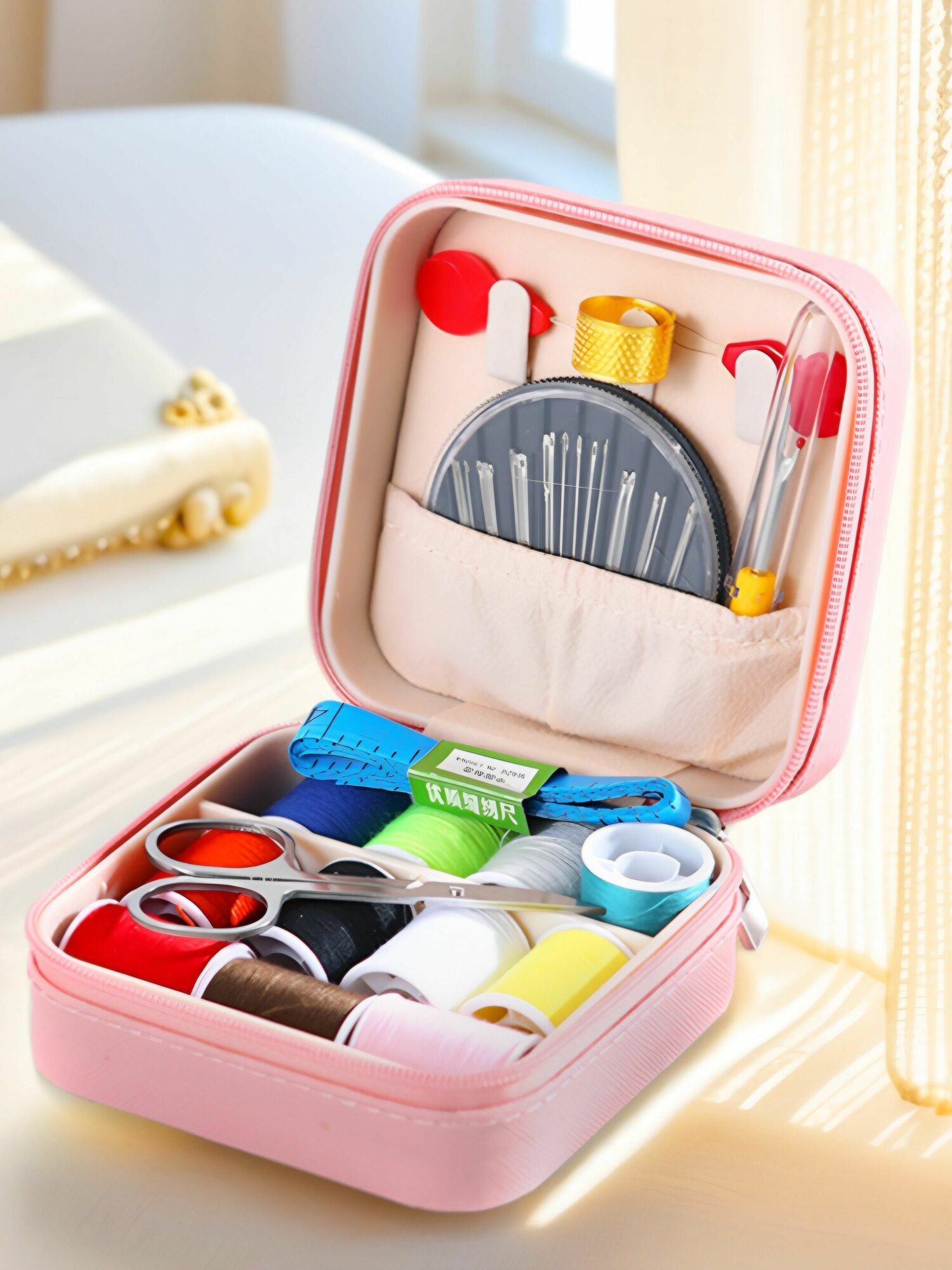 Купить Швейный набор шкатулка на молнии (розовый)