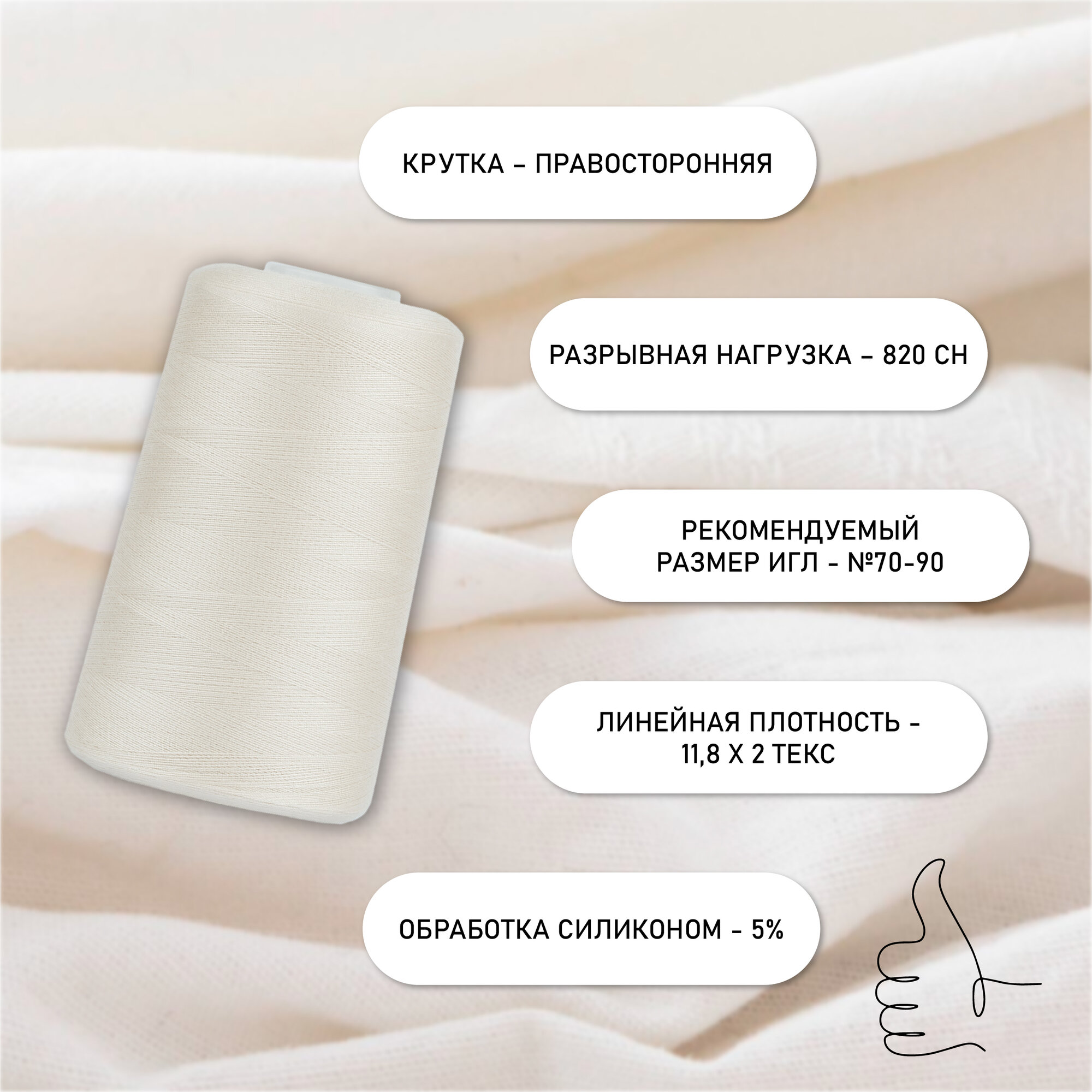 СохранитьНитки швейные 50/2 полиэстер 5000 ярд цв.101 экрю MAX интересное: