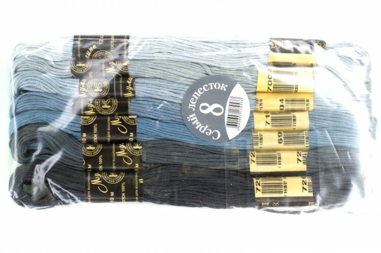 Набор ниток мулине "Цветик-семицветик", хлопчатобумажные, цвет: серый лепесток №8, 10 м, 7 шт