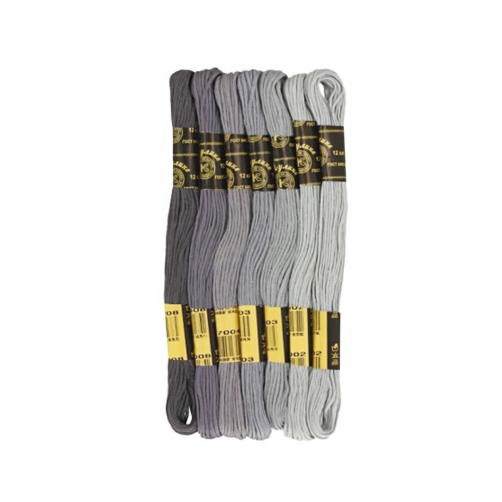 Набор мулине "ПНК им. Кирова" "Цветик-Семицветик" 100% хлопок 7 цв. x 10 м Набор №8 серая гамма