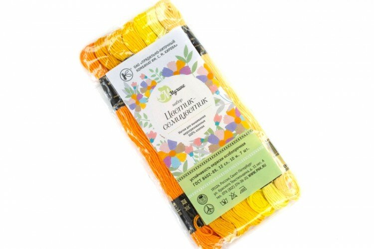Набор ниток мулине Цветик-семицветик № 1 Желтый лепесток, 100% хлопок, 7шт по 10м, 1уп