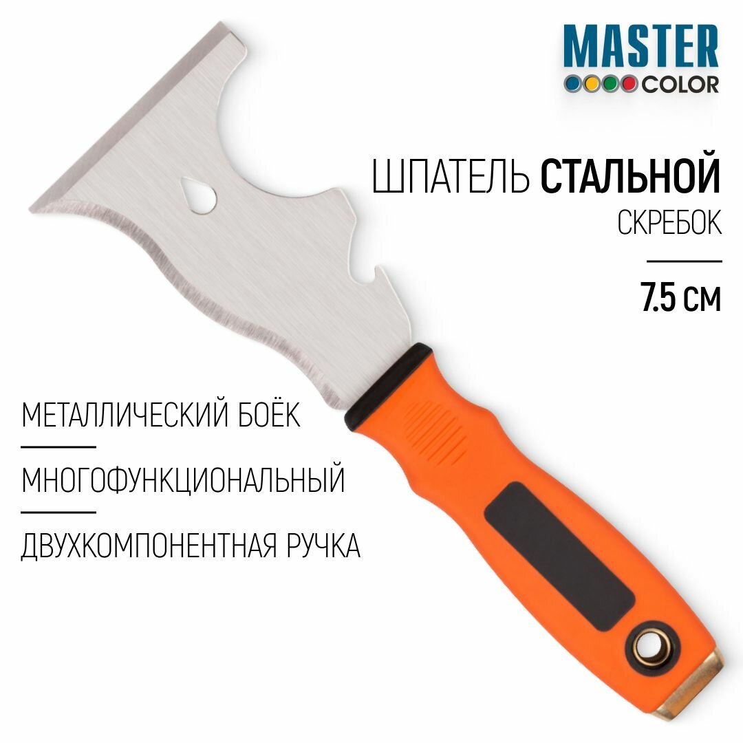Многофункциональный шпатель-скребок Master Color 30-2614 (75 мм, нержавеющая сталь, 2К-ручка)