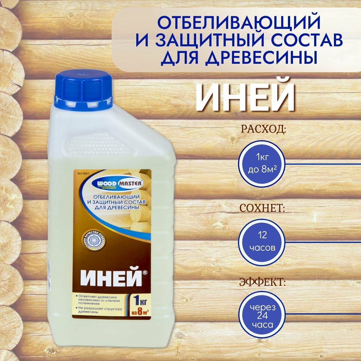 Пропитка отбеливающая биоцидная Иней Woodmaster 1кг бесцветный