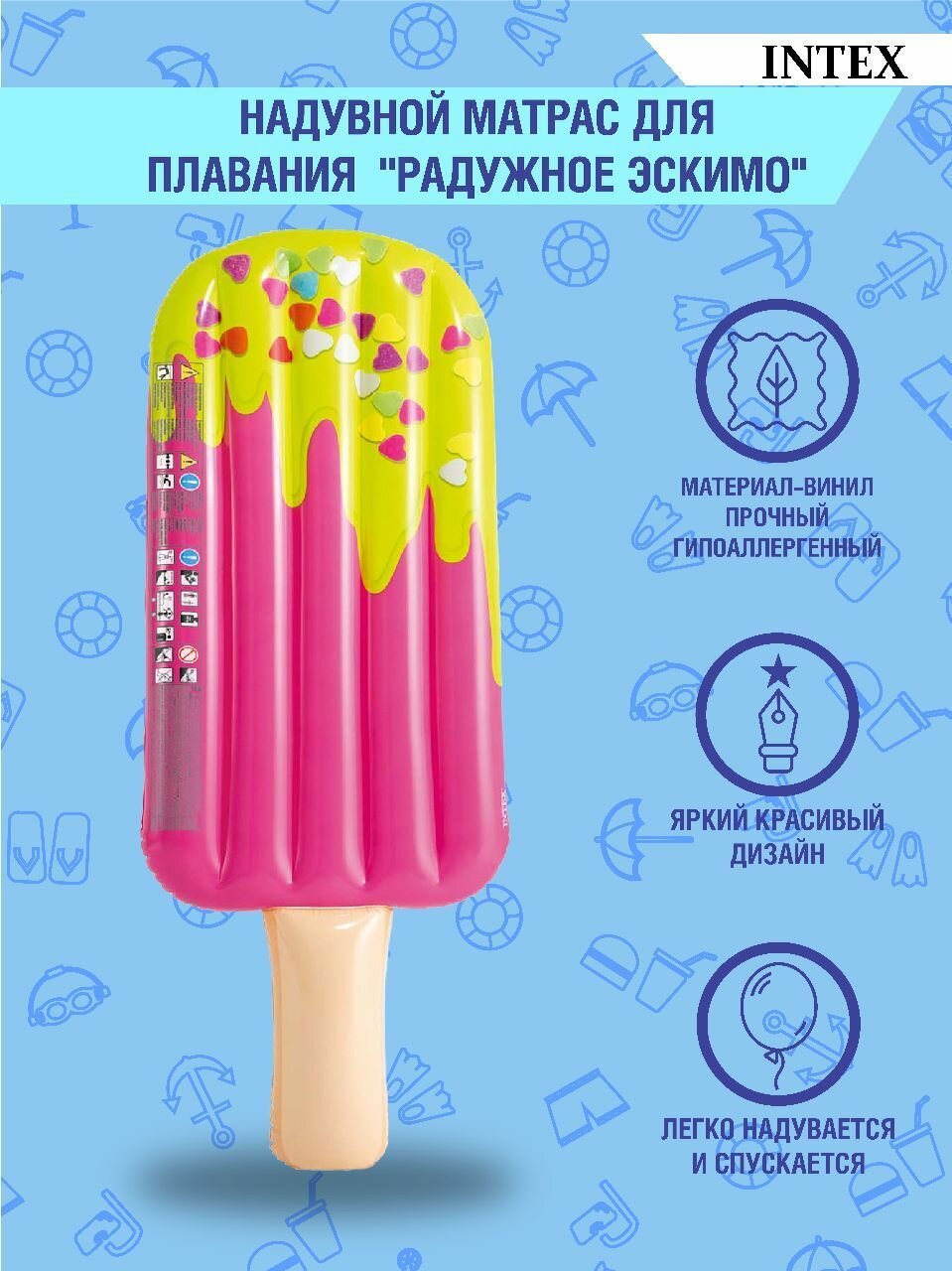Купить Надувной матрас-плот для плавания 183х66х20см "Радужное эскимо" INTEX 58766EU, плот пляжный для взрослых и детей