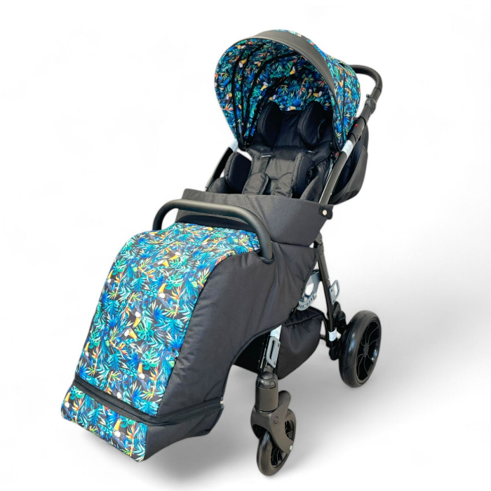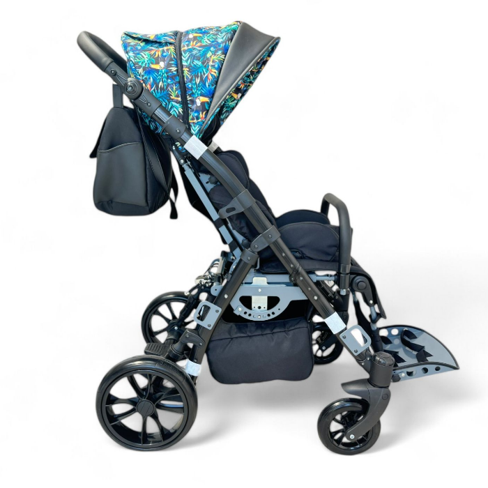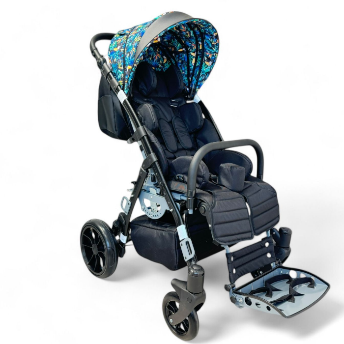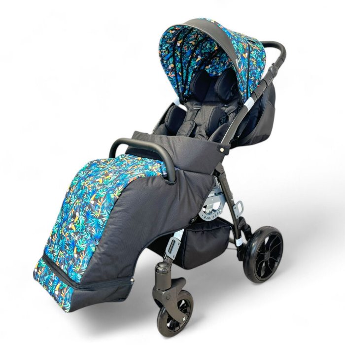 | Комплектация | рама со съемным сиденьем, пятиточечный ремень, навес, абдуктор, боковые поддержки, подголовник, поручень ограничитель, дождевик, корзина, сумка для аксессуаров, держатели стоп, столик, ремни для разведения ног, москитная сетка, мешок для ног, зимние перчатки, Дополнительные опции: зонтик |