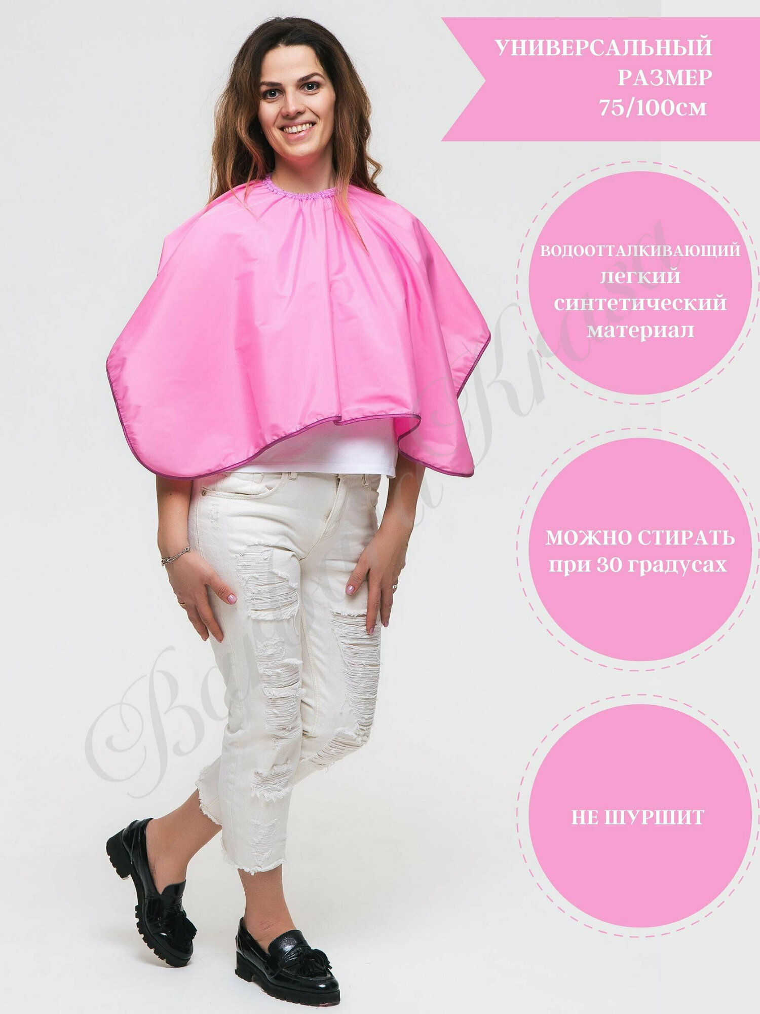 Купить Пелерина для окрашивания и стрижки парикмахерская 75/100 см Горловина на резинке и крючках. Розовая. Многоразовый НЕ шуршащий, Антистатический Водоотталкивающий материал. Barbara Krasa