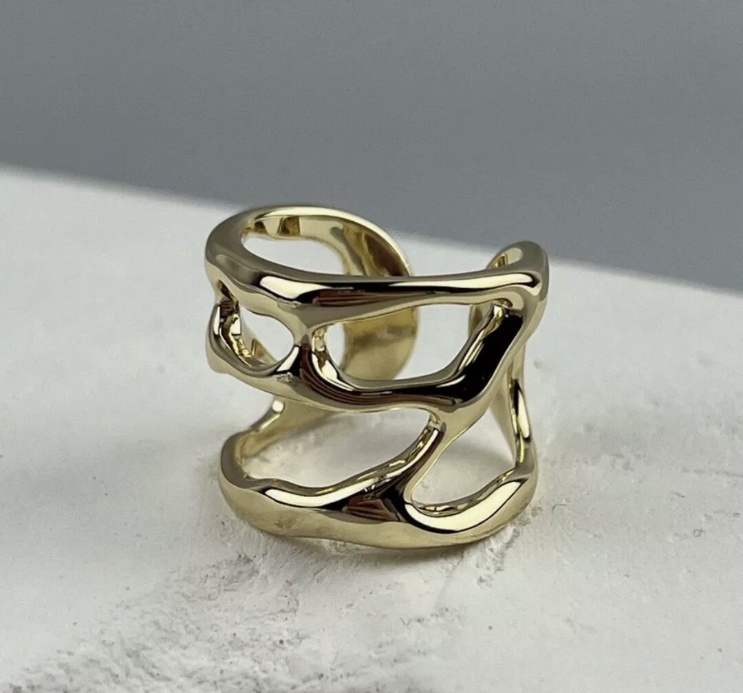 Женское безразмерное кольцо liquid, абстрактное, геометричное, серебристое, от Reniva