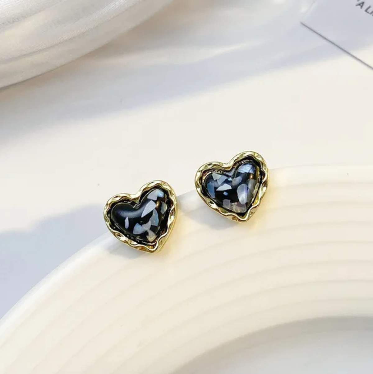 Пусеты 12 пар One year, сердцем к сердцу, цвет цветные в золоте