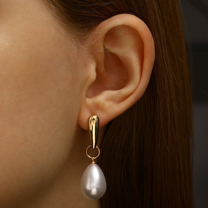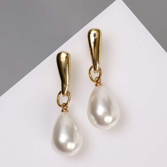 Купить Серьги с жемчугом "Грейс" пухлая капля, цвет белый в золоте 6629684