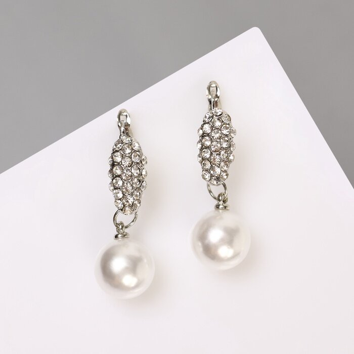 Купить Серьги с жемчугом "Грейс" шарик, цвет белый в серебре 6629677